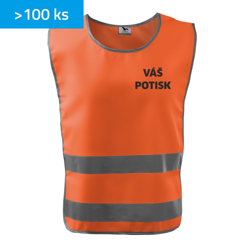 - Reflexní vesta přes hlavu oranžová s potiskem na hrudi | ODBĚR 100+ ks